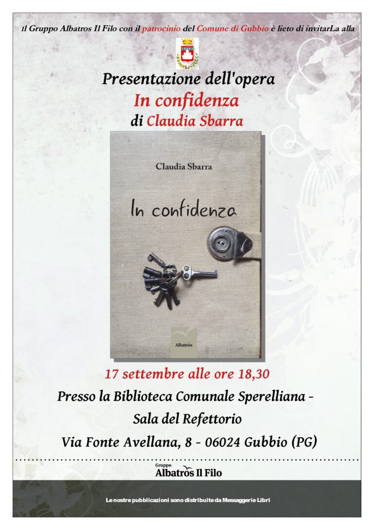 presentazione del libro di Claudia Sbarragiovedì 17 settembre 2020, ore 18.30 giovedì 17 settembre 2020, ore 18.30Gubbio – Biblioteca Comunale…