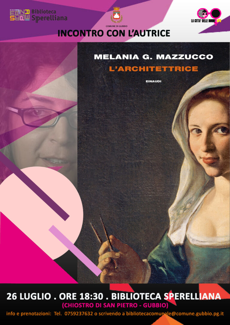 domenica 26 luglio, ore 18.30 Gubbio – Biblioteca Sperelliana Melania Mazzucco a Gubbio per parlare del suo ultimo libroL’ARCHITETTRICE (Einaudi, 2019) Melania…