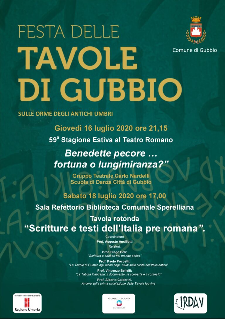 GIOVEDI’ 16 LUGLIO 2020 Festa delle Tavole di GubbioSulle orme degli antichi umbri PROGRAMMA →giovedì 16 luglio 2020, ore 21.15…