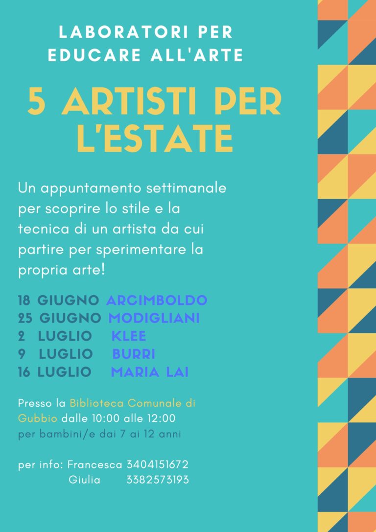 laboratori di arte in Biblioteca per ragazze e ragazzi dai 7 ai 12 anni EDUCARE ALL’ARTE Riprendono il 18 giugno…