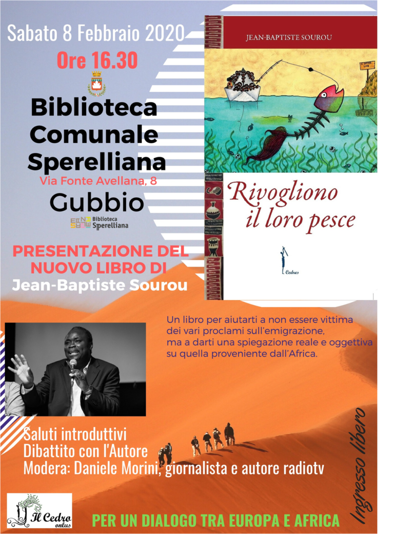 J.B. Sourou in Bibliotecasabato 8 febbraio 2020 presentazione del libro RIVOGLIONO IL LORO PESCE (Cedro) un libro di Jean Baptiste Souro…