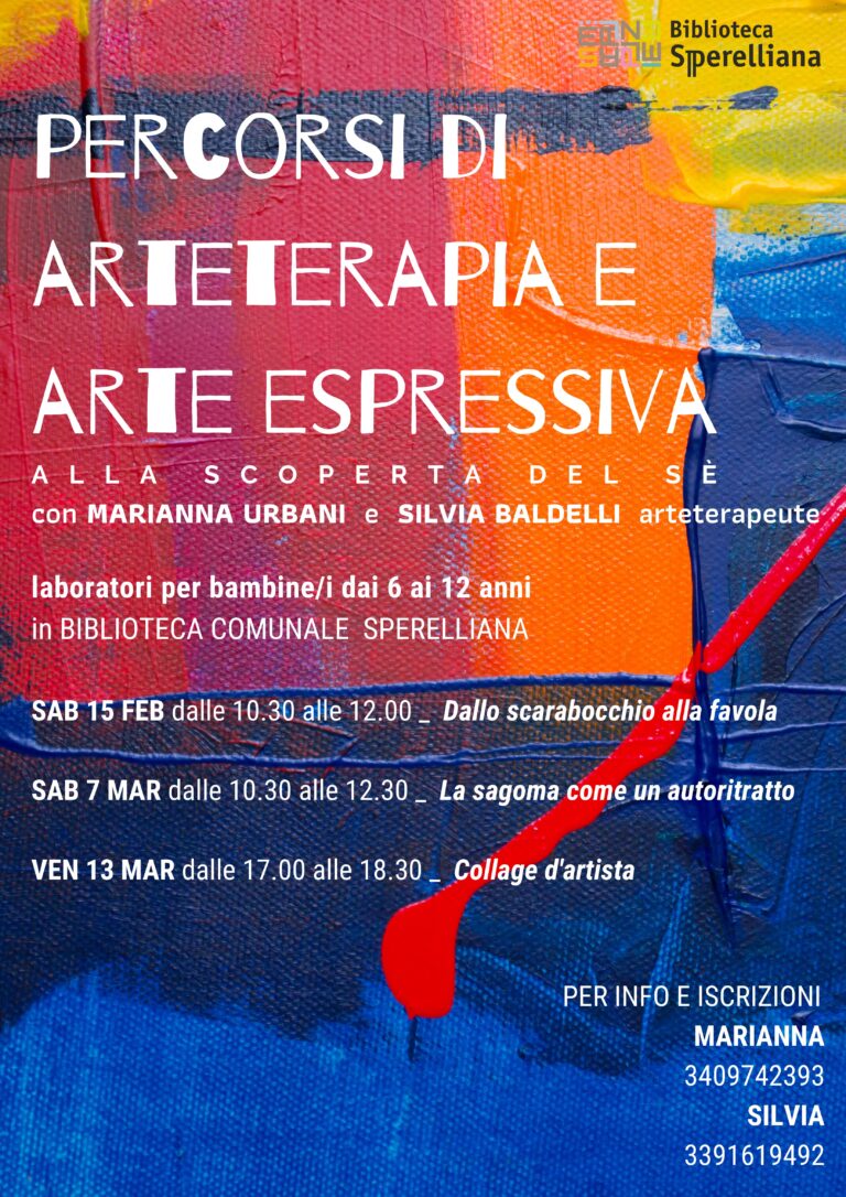 3 laboratori in Biblioteca ARTETERAPIA E TERAPIA ESPRESSIVAalla scoperta del sè 3 appuntamenti per bambine/i dai 6 ai 12 anni dedicati…