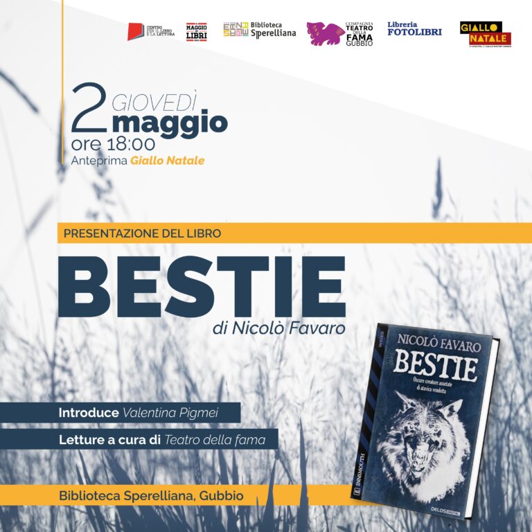 Anteprima Giallo Natale 2024Presentazione del libro BESTIE di Nicolò Favaro2 maggio, ore 18:00 BESTIE di Nicolo’ Favaro Giovedì 2 maggio…