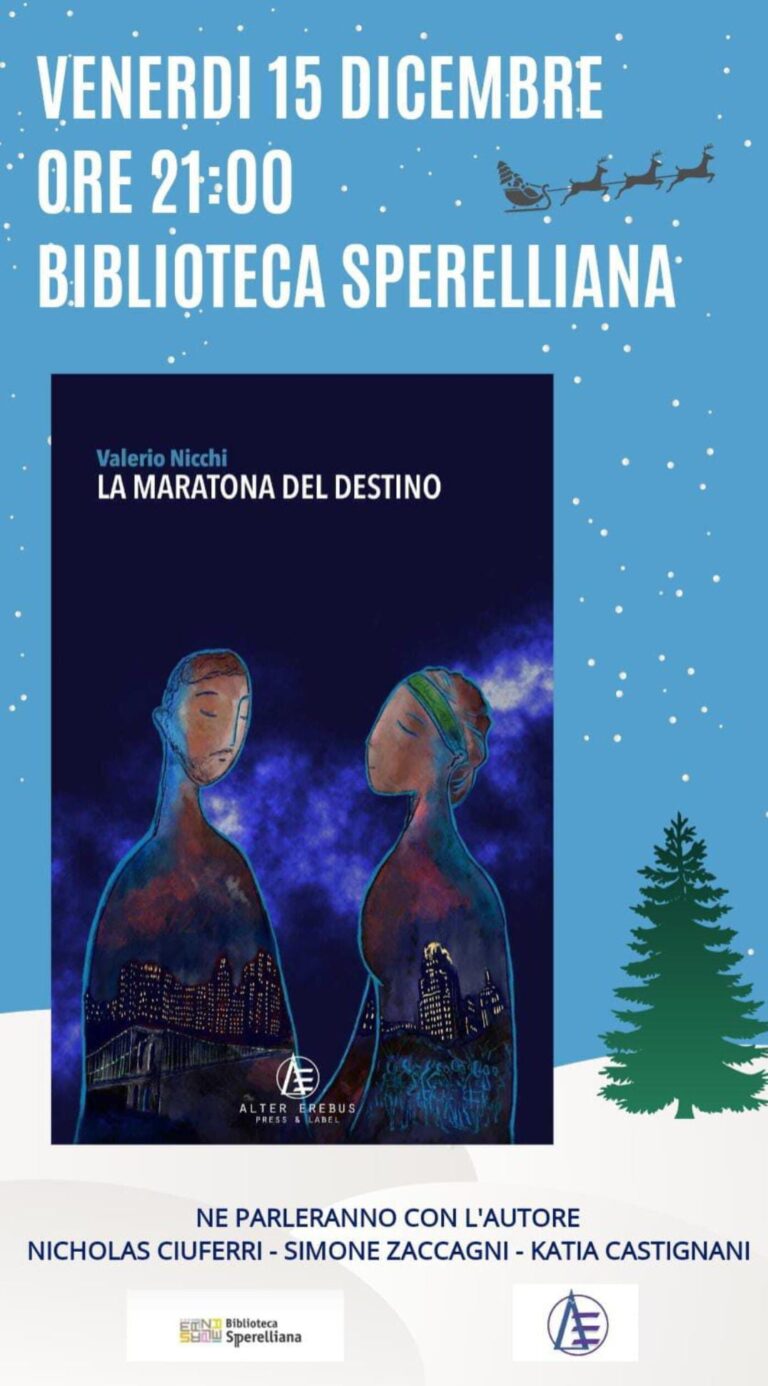 venerdì 15 dicembre 2023 alle ore 21.00, Sala ex Refettoriopresentazione de “La maratona del destino”ne parleranno con l’autore: Nicholas Ciuferri,…