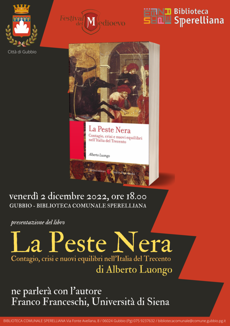 presentazione del libro di Alberto Luongoven. 2 dicembre 2022, ore 18.00 “La Peste Nera. Contagio, crisi e nuovi equilibri nell’Italia…