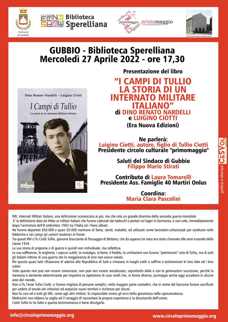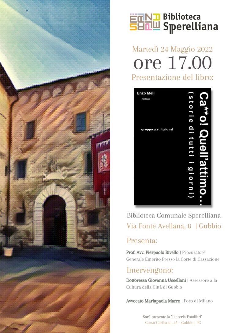 presentazione del libro mercoledì 27 aprile 2022 ore 17.30 Mercoledì 27 aprile 2022, ore 17.30Gubbio, Biblioteca Comunale Sperelliana Presentazione del…
