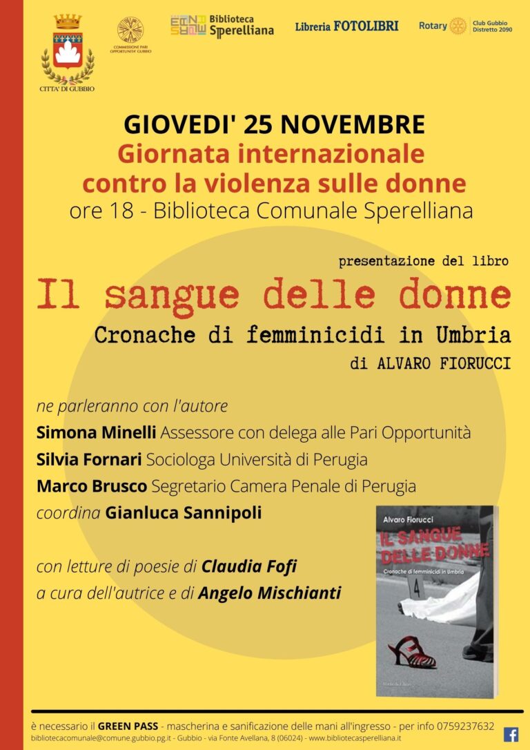 25 novembreGiornata Internazionale contro la violenza sulle donnepresentazione del libro IL SANGUE DELLE DONNEgiovedì 25 novembre, ore 18.00 – Biblioteca…
