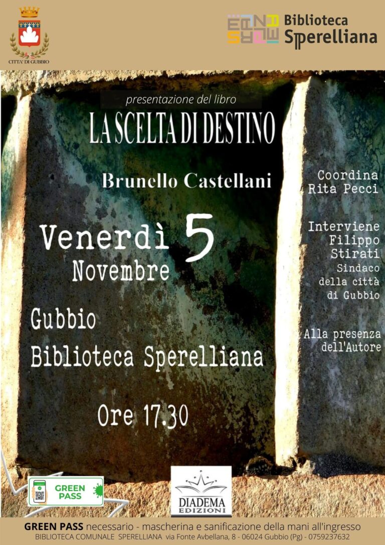 venerdì 12 novembre ore 21Biblioteca Comunale Sperelliana Venerdì 12 novembre alle ore 21, presso la sala dell’ex-Refettorio della Biblioteca Sperelliana…