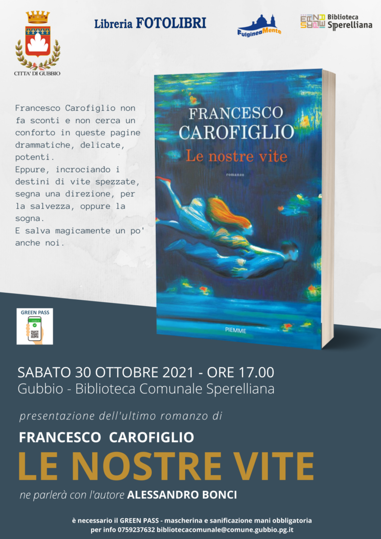 presentazione dell’ultimo romanzoLE NOSTRE VITEsabato 30 ottobre 2021, ore 17.00 presentazione del libroLE NOSTRE VITEdi Francesco Carofiglio Un professore di…