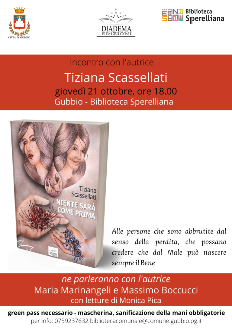 presentazione del libro di Tiziana Scassellati, giovedì 21 ottobre 2021, ore 18.00Biblioteca Comunale Sperelliana presentazione del libroNULLA SARA’ COME PRIMA (Diadema…