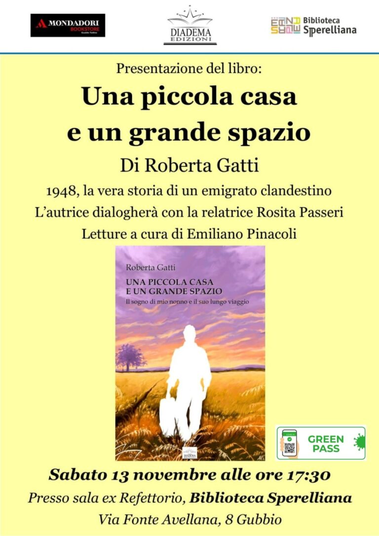sabato 13 novembre 2021, ore 17.30Biblioteca Comunale Sperelliana presentazione del libroUna piccola casa e un grande spaziodi Roberta Gatti Sabato 13…