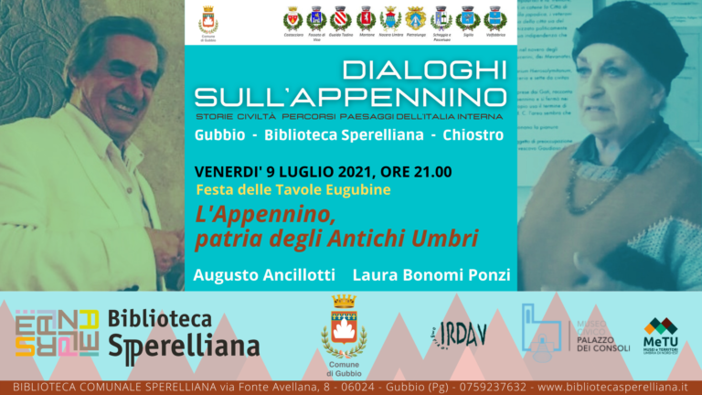 Dialoghi sull’Appennino. Storie, civiltà, percorsi, paesaggi dell’Italia interna 9, 12, 15 luglio 2021Gubbio, Biblioteca Comunale Sperellianachiostro ex Monastero di San Pietro…