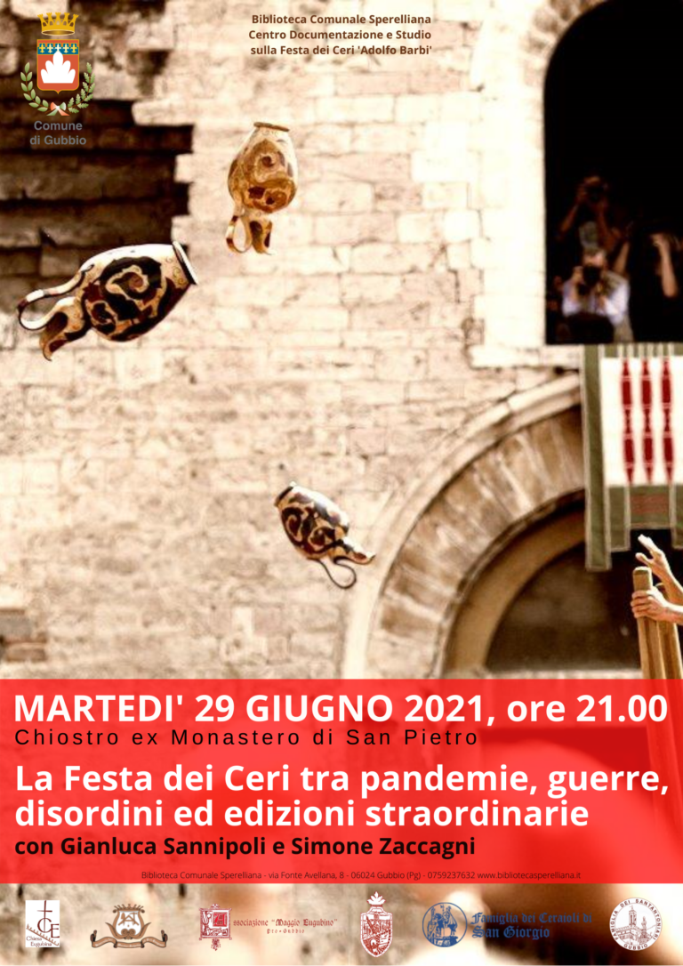 conferenza di Gianluca Sannipolimodera Simone Zaccagnimartedì 29 giugno 2021Chiostro San Pietro – Gubbio Quando e perché la Festa dei Ceri…