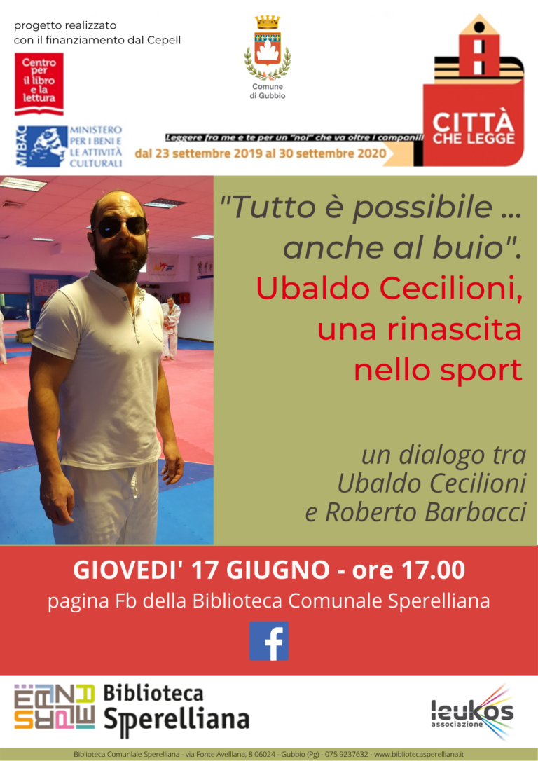 Ubaldo Cecilioni, una rinascita nello sportgiovedì 17 giugno 2021 alle ore 17.00 “Tutto è possibile…anche al buio”.Ubaldo Cecilioni, una rinascita…